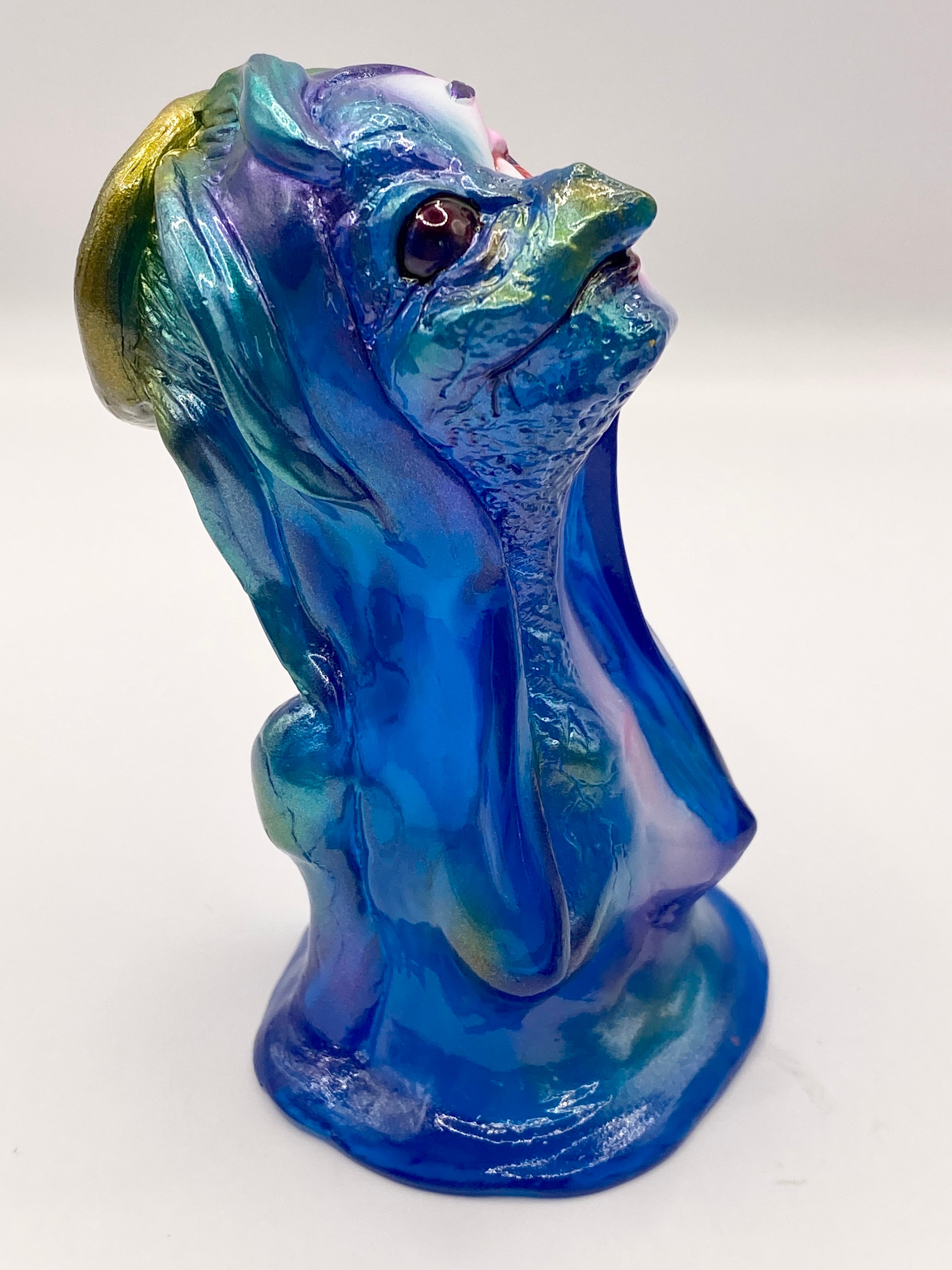水面からザバッと出てきた状態に、クリアブルーの透明感とメタリック塗料の艶めきが、清涼感のある色香を演出します。