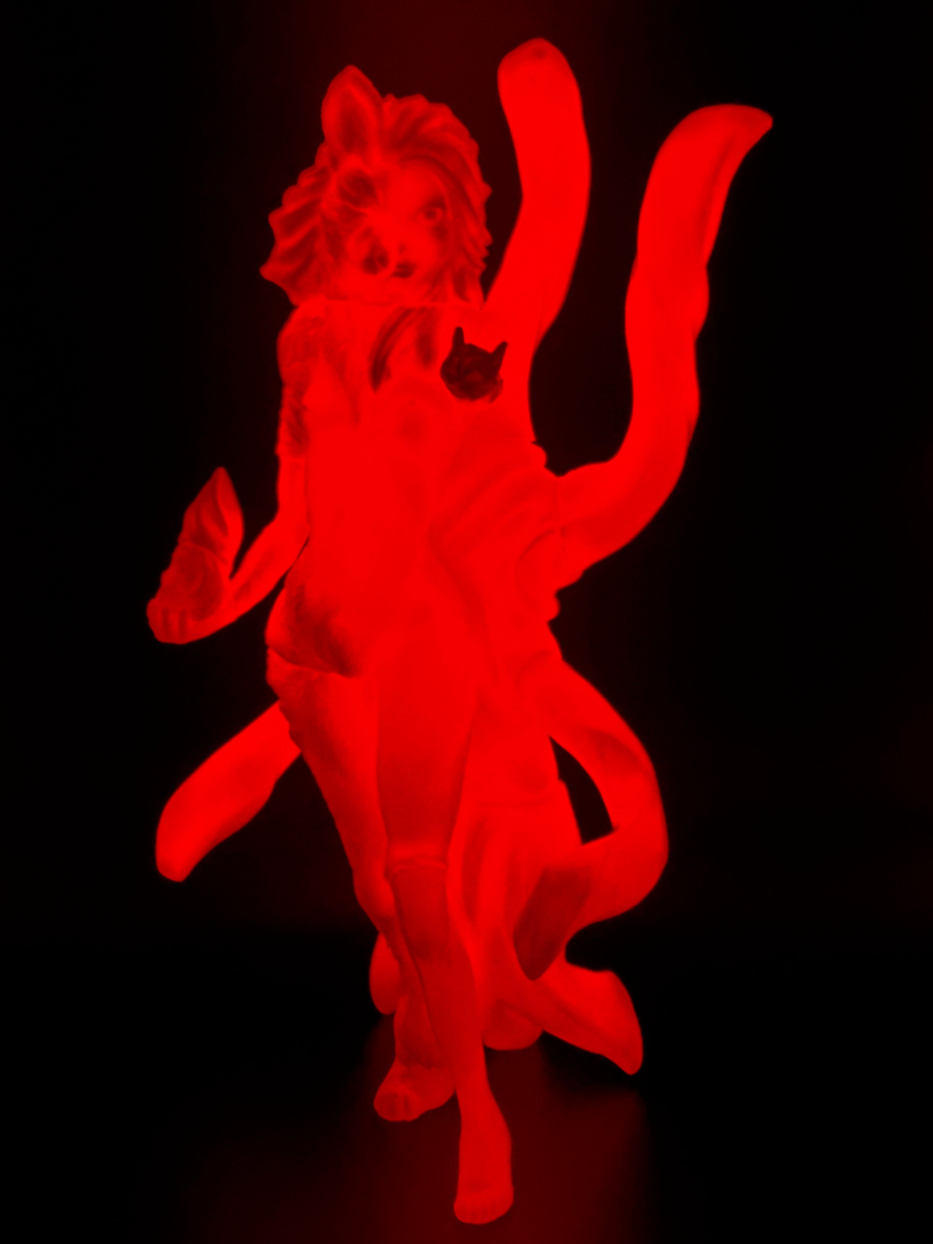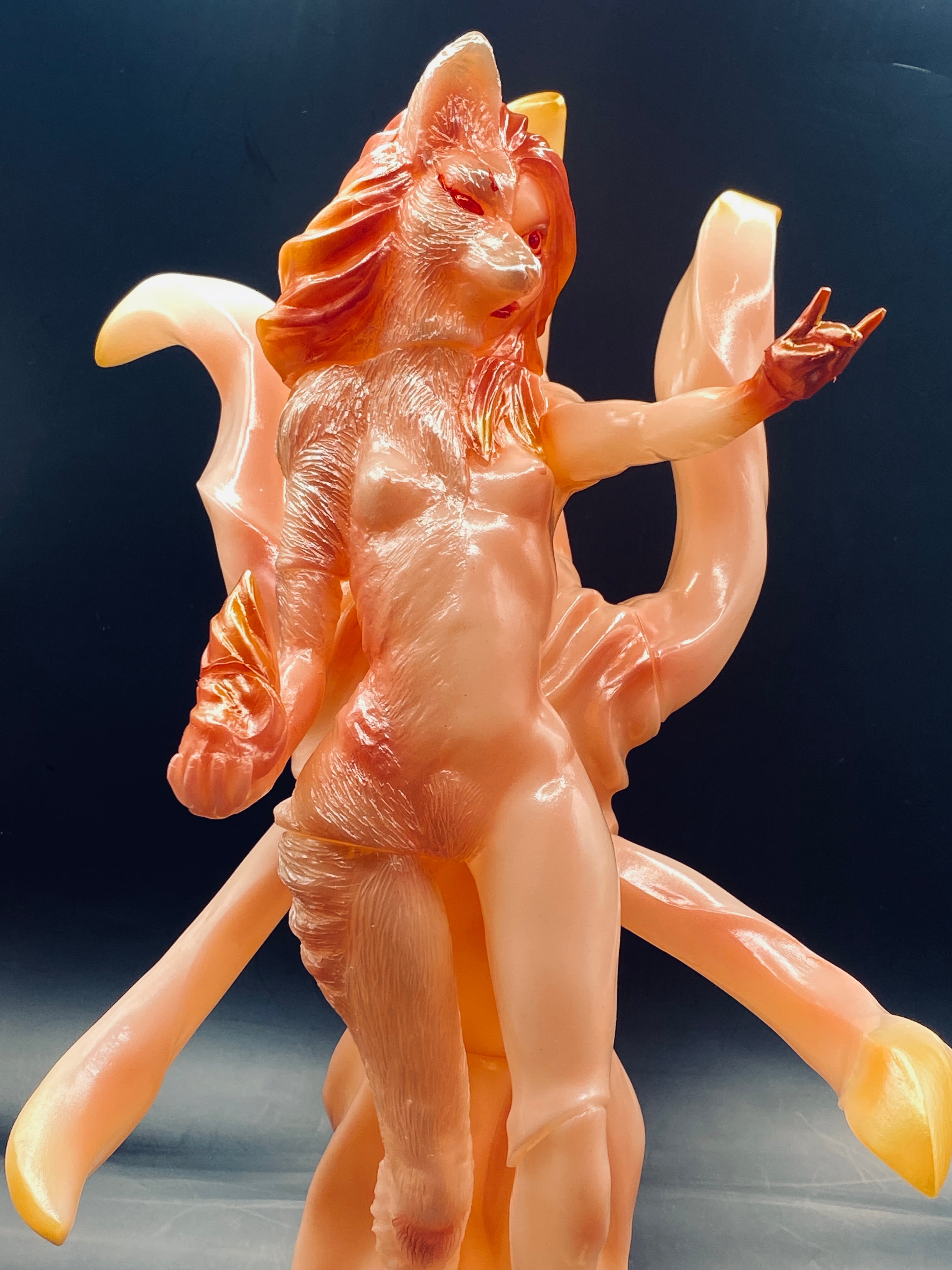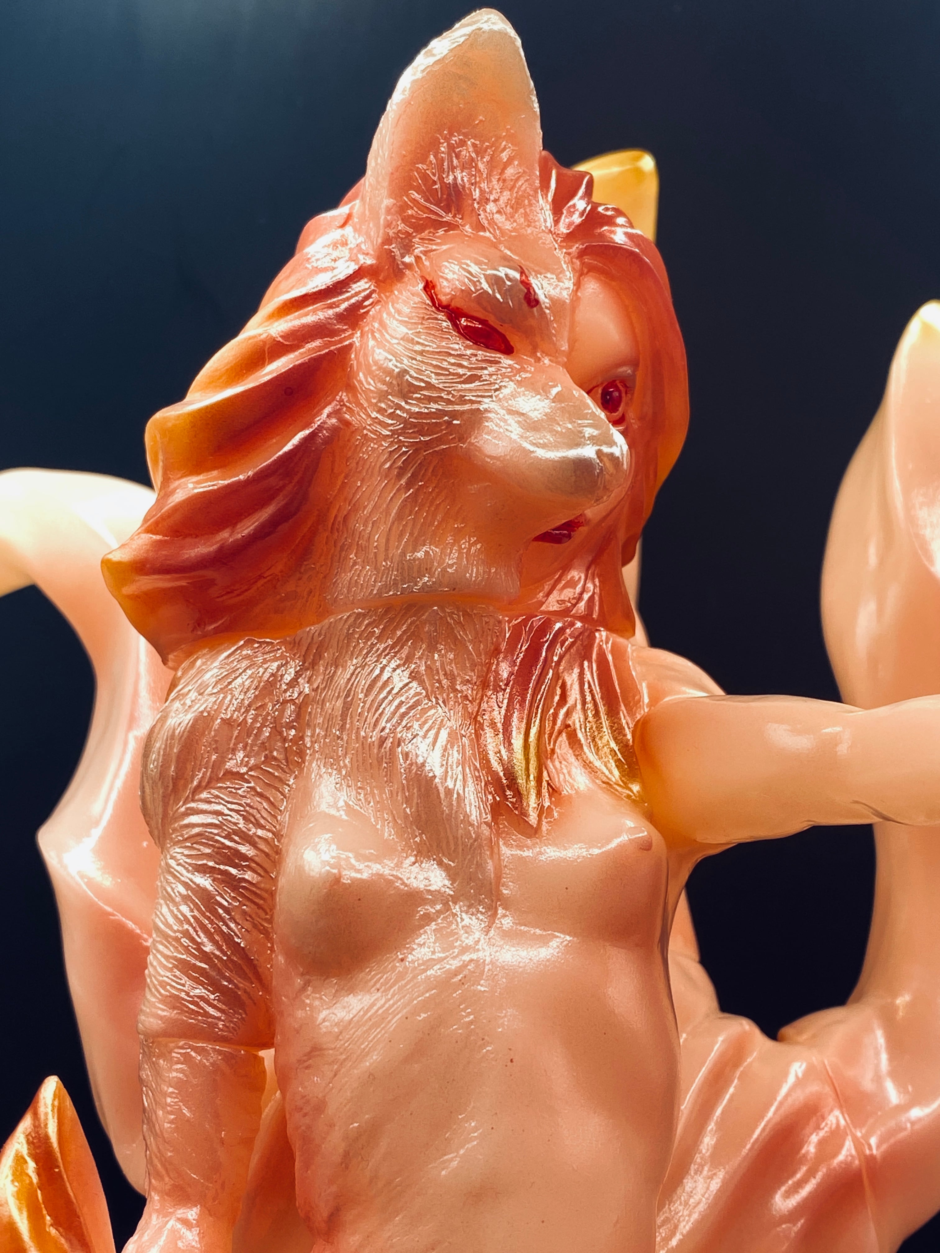 妖怪界のトップスター“九尾の狐”をモチーフとした半獣半人のデザインは、背面の9本の尻尾が圧巻!既存のソフビアイテムの中でも屈指のボリュームを誇ります。尻尾パーツは一部可動。