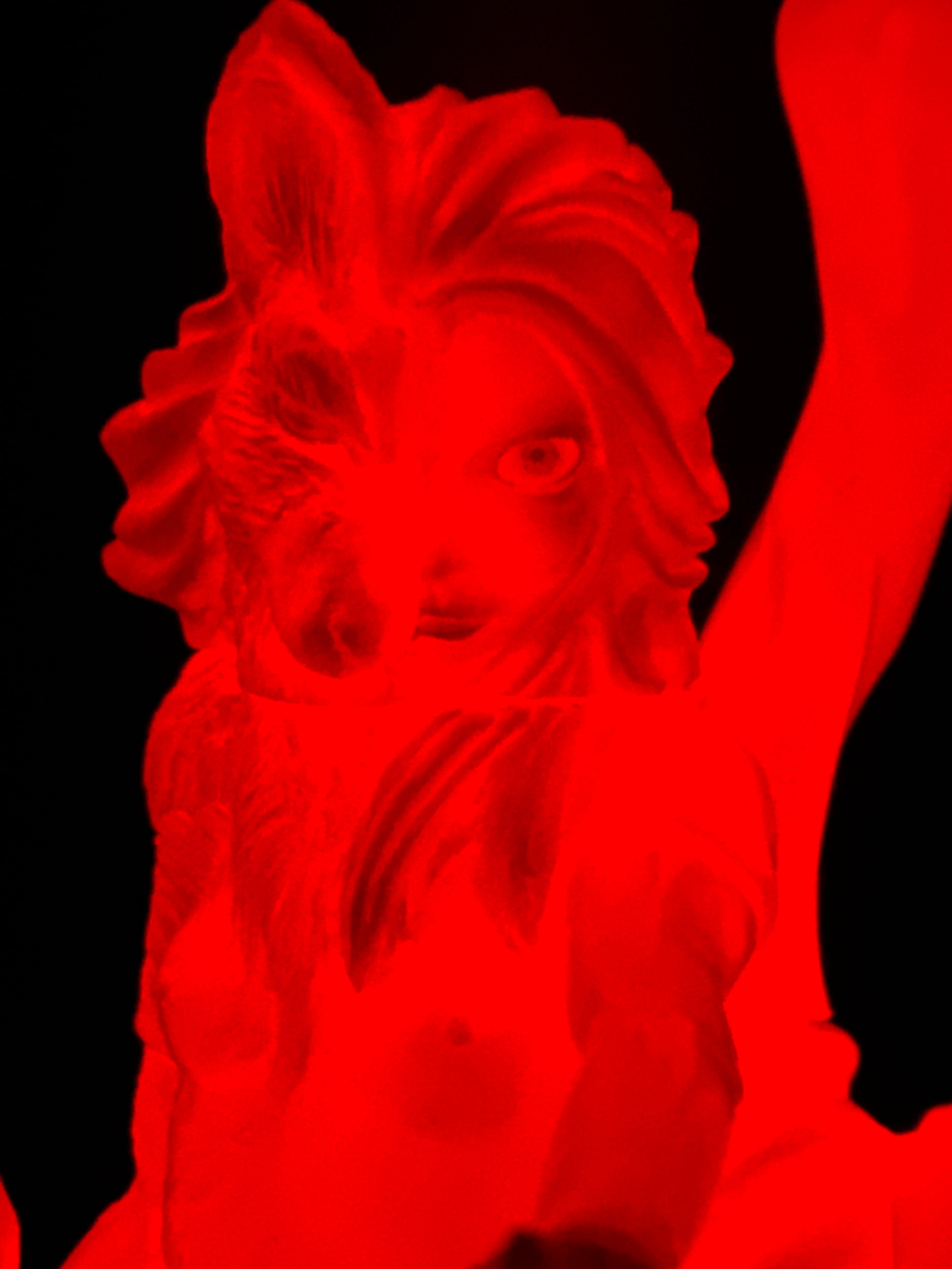 暗闇で真っ赤に光る、“赤蓄光”の素材を採用。キャラクター性と神秘性がぐっと増したスペシャルアイテムです。