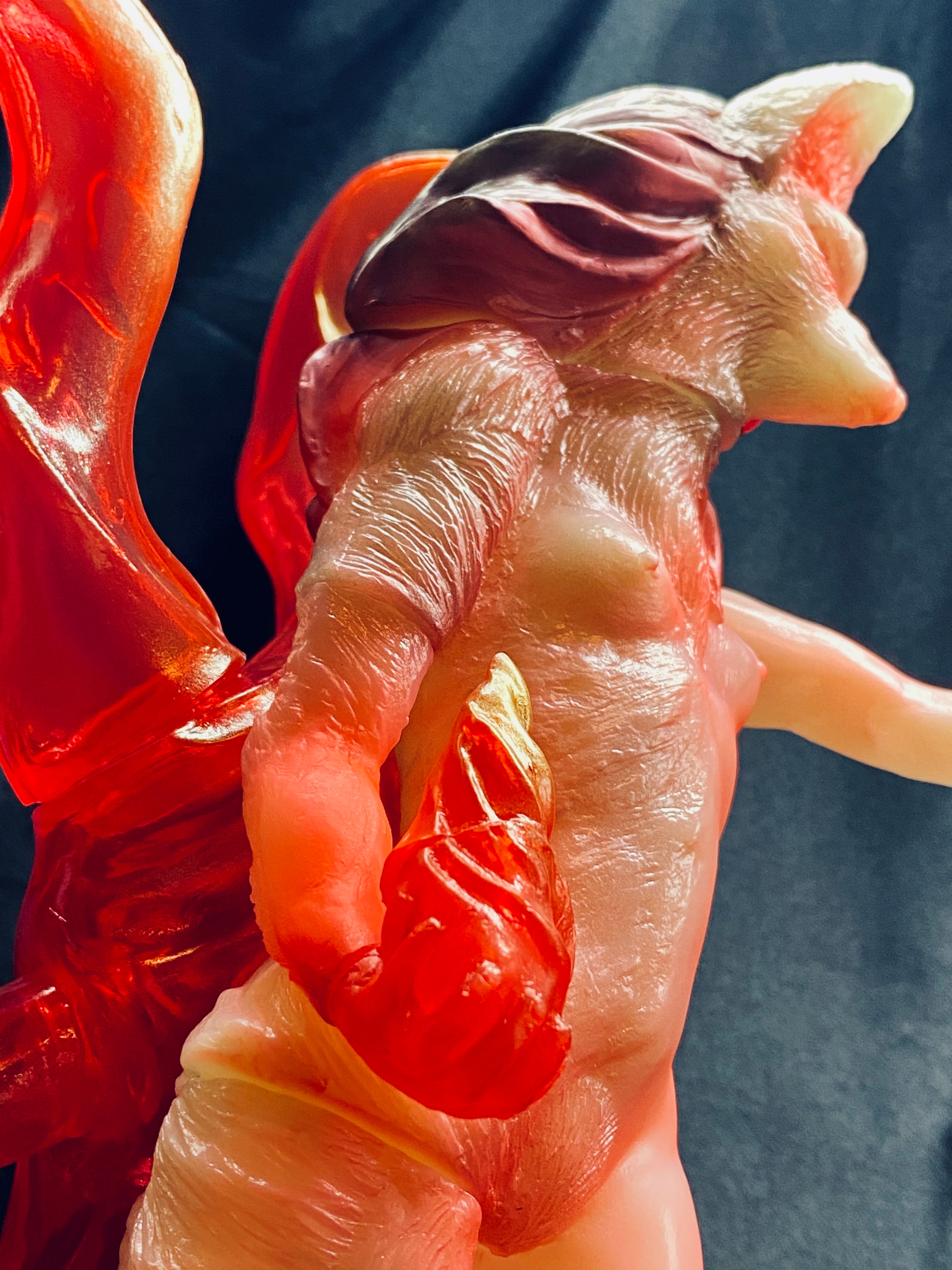 妖怪界のトップスター“九尾の狐”をモチーフとした半獣半人のデザインは、背面の9本の尻尾が圧巻!既存のソフビアイテムの中でも屈指のボリュームを誇ります。
